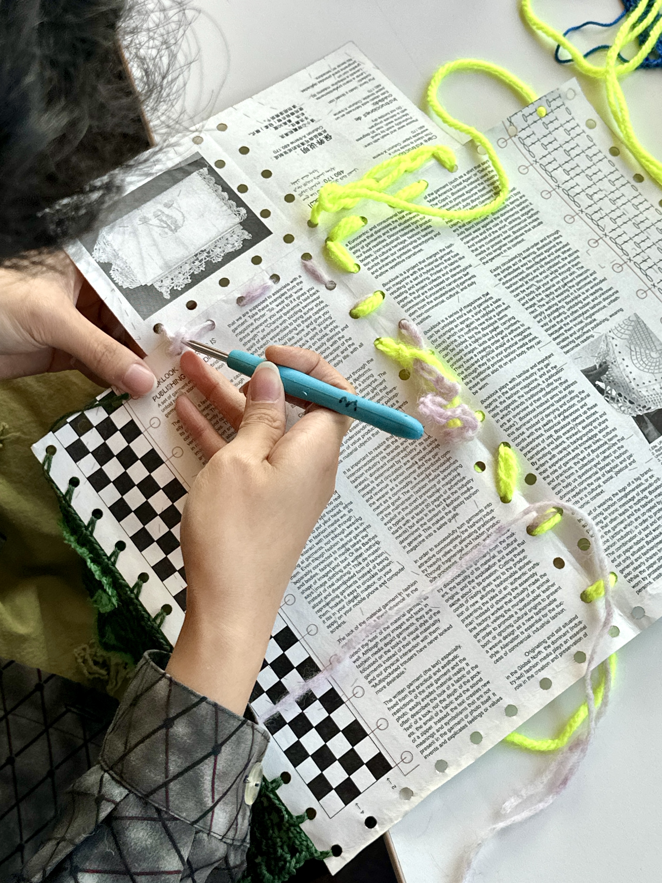 Meld je nu aan voor een workshop met ontwerpers Anouk Beckers en Mika Perlmutter waarin je leert hoe je haak-diagrammen leest & uitvoert in Booklook issue 2.